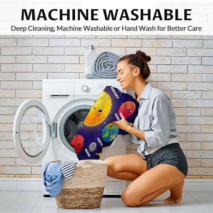 - Multiple Color Options and Machine Washable: Our cute planet blanket is printed one side, with many patterns to choose, whether you prefer bold and bright colors, intricate patterns, or more subtle designs, you'll find the match. Machine washable for easy care and maintenance, we recommend machine washing in cold water and tumble drying on low heat, your blanket will remain soft and comfortable for years to come.