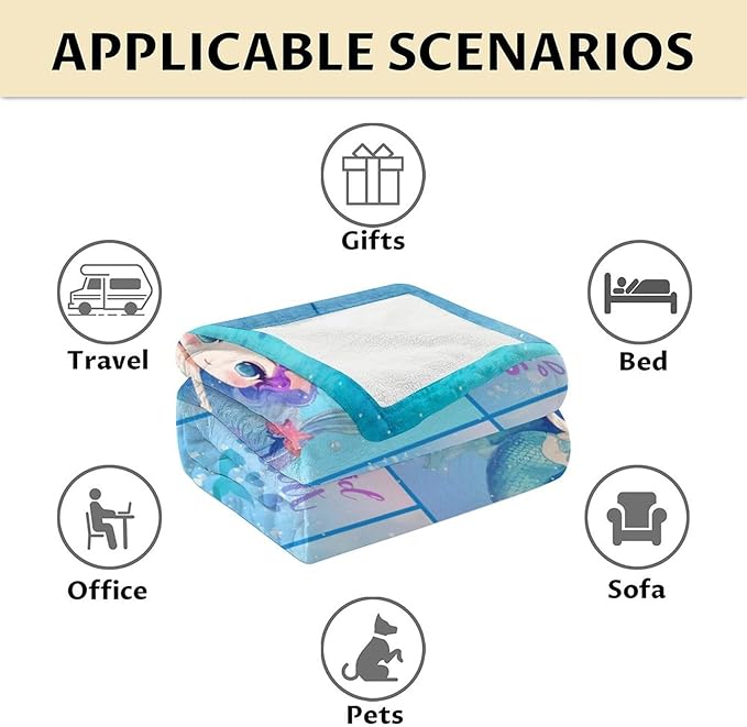 - Aesthetic Mermaid Graphic: Enhance your cozy moments with a charming Mermaid graphic printed on the blanket. Whether it's for a child's nursery or a Mermaid enthusiast, this design adds a touch of personality to your space.