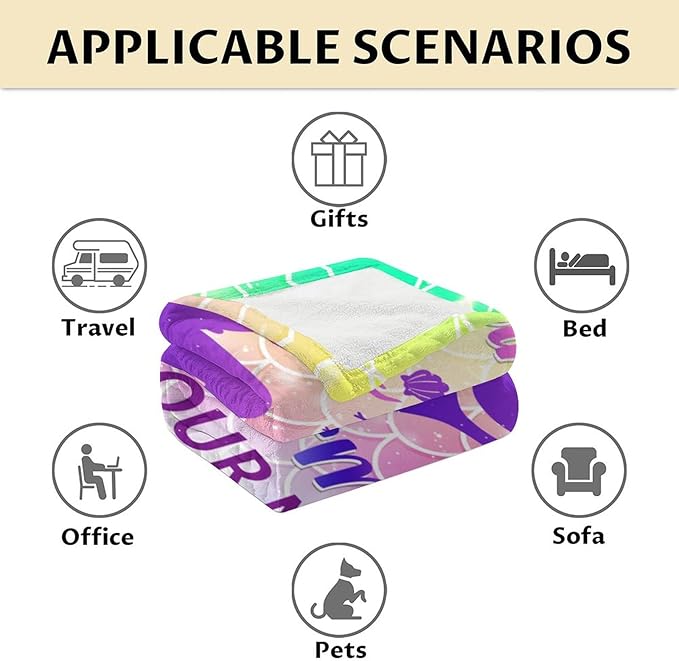 Personalized Mermaid Blanket with Name - Soft, Fuzzy & Warm - 60"x80" Twin Size Blanket for Bed, Couch & Living Room - Colorful Cute Throw Gifts for Girls