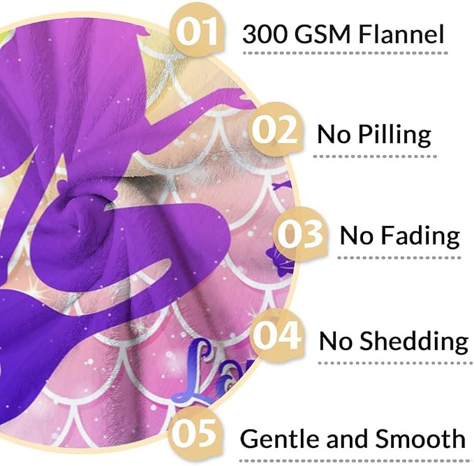 - Aesthetic Mermaid Graphic: Enhance your cozy moments with a charming Mermaid graphic printed on the blanket. Whether it's for a child's nursery or a Mermaid enthusiast, this design adds a touch of personality to your space.