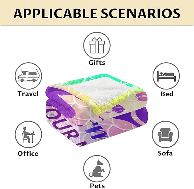 Personalized Mermaid Blanket with Name - Soft, Fuzzy & Warm - 30"x40" Small Blanket for Couch, Office - Colorful Cute Throw Gifts for Girls
