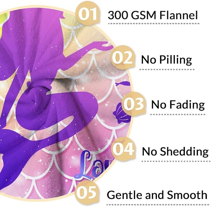 - Aesthetic Mermaid Graphic: Enhance your cozy moments with a charming Mermaid graphic printed on the blanket. Whether it's for a child's nursery or a Mermaid enthusiast, this design adds a touch of personality to your space.