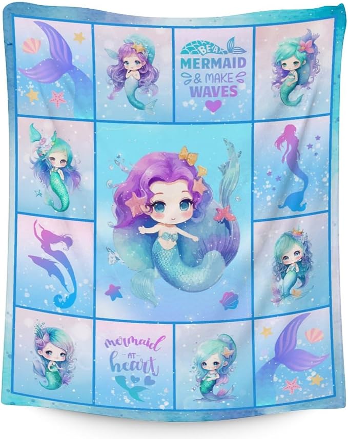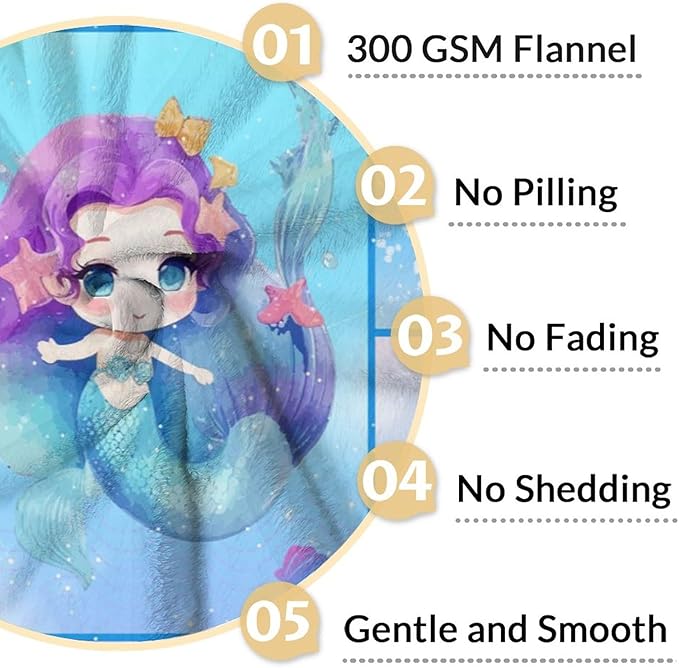 - Aesthetic Mermaid Graphic: Enhance your cozy moments with a charming Mermaid graphic printed on the blanket. Whether it's for a child's nursery or a Mermaid enthusiast, this design adds a touch of personality to your space.