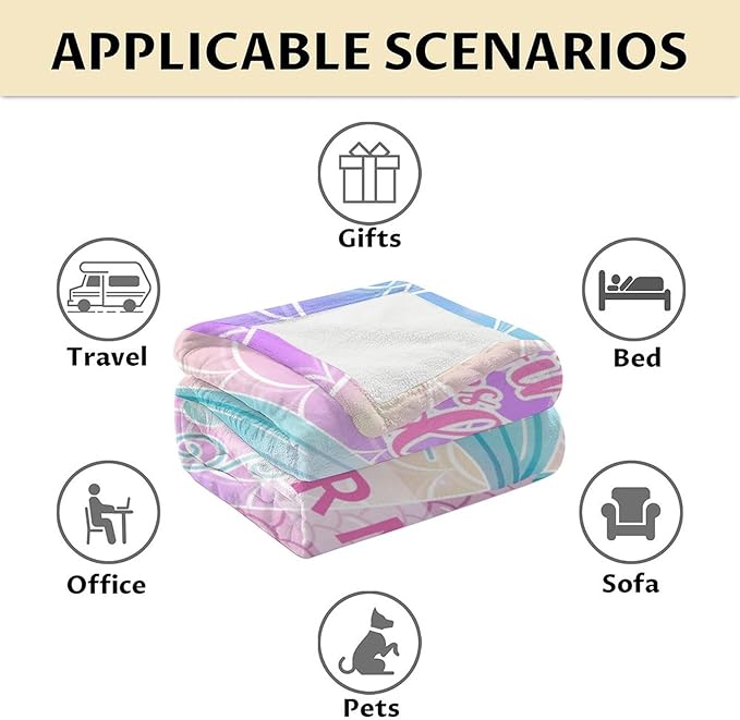 Personalized Mermaid Tail Blanket with Name - Soft, Fuzzy & Warm - 30"x40" Small Blanket for Couch, Office - Colorful Cute Throw Gifts for Girls