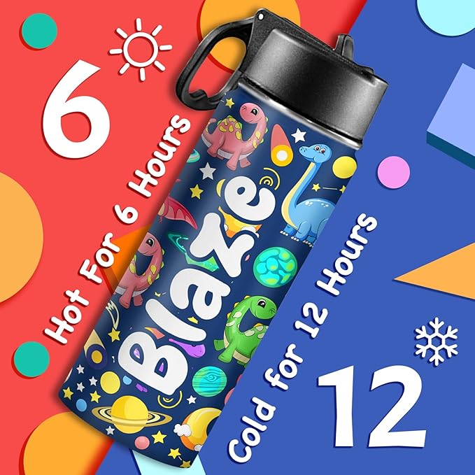 - 【Personalized Water Bottles for Kids】Our fun and cute water bottles are made of food-grade materials, ensuring the safety and health of your child. With a variety of kid-friendly designs to choose from, we offer full customization with your child's name, guaranteeing a smile on their face and keeping both boys and girls happy and hydrated!