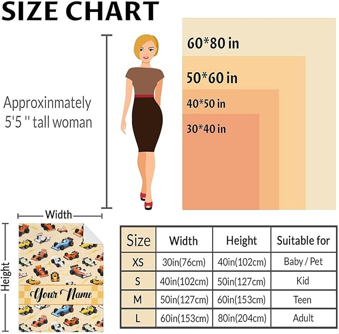 - Various Sizes Blanket: This cars flannel throw blanket is available in four sizes to fit your every need. Lap size (30” x 40”) is suitable for sofas and offices; crib size (40” x 50”) is great for sofas; throw size (50” x 60”) is great for beds and sofas; and twin size (60” x 80”) suitable for beds, sofas, cars and living rooms