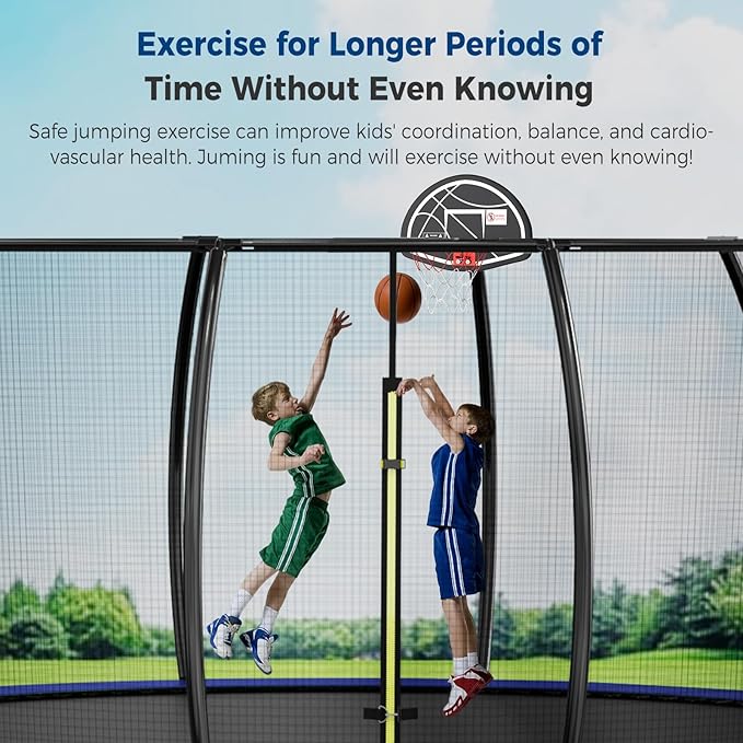 - 【The Ultimate Gift for Kids】A trampoline offers more than just fun; it's a gift of good health. It boosts the immune system, strengthens the skeletal system, helps control weight, and serves as a stress reliever. Our trampoline for kids and adults is a perfect outdoor gift