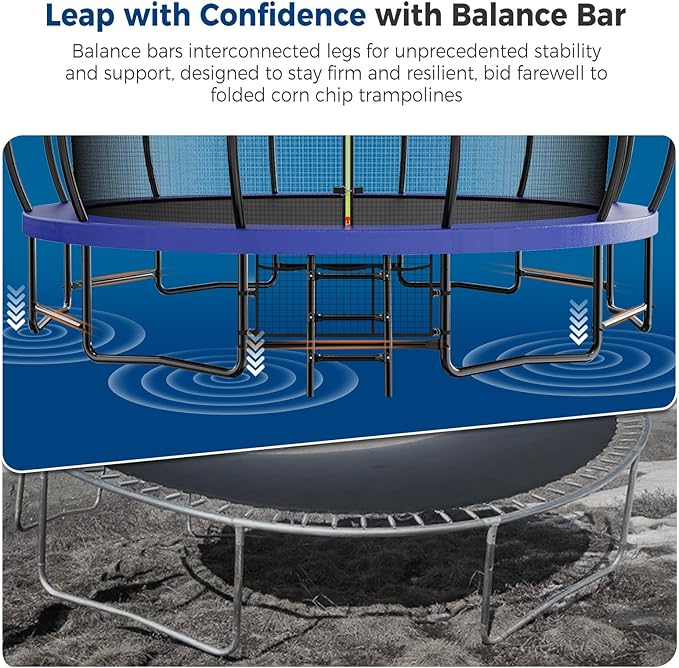 - 【Safety Comes First】Our 16FT pumpkin trampoline prioritizes safety with its curved pole design and inner net. You'll find 12 curved poles, each wrapped in soft foam and covered with waterproof plastic. Not only does this enhance the trampoline's durability, but it also safeguards your children from collisions with steel poles