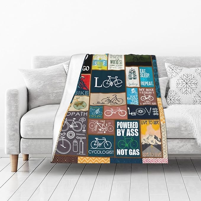 Bicycle Cycling Blanket Funny Bike Throw Blankets Gifts for Men Boys Girls Women Plush Cozy Flannel Fleece Ultra Soft Fuzzy Party Blanket for Bed Couch Sofa 50"X40"