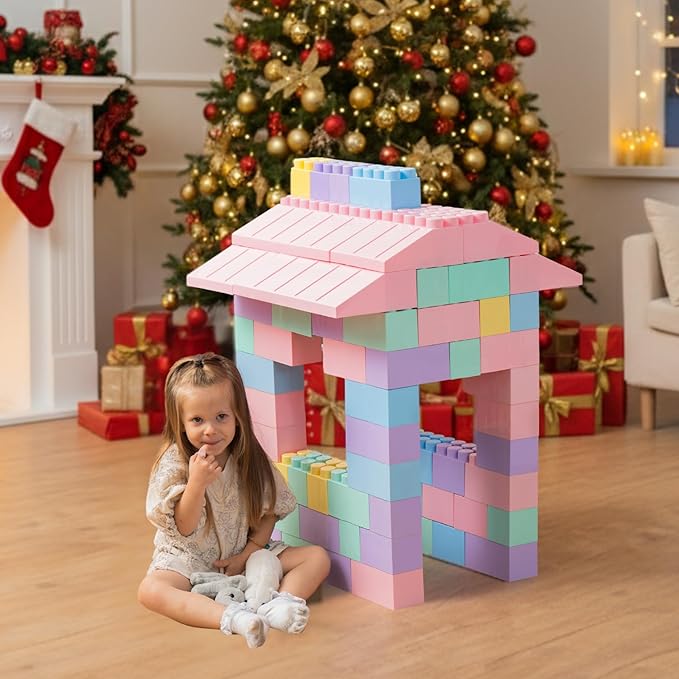 PLATPORTS 86-Piece Pastel Jumbo Big Blocks – Giant XL Pastel Building Blocks for Kids Ages 2–8, Large Plastic Construction Set for Indoor & Outdoor Play