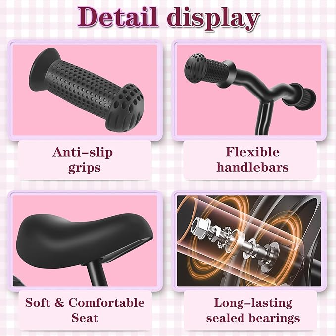 - 【Adjustable Handlebar and Seat】The balance training bike features an adjustable handlebars and comfy seat.It can be adjusted easily while the child grows up.the seat can be adjustable from 30-41cm(11.8"-16.14")