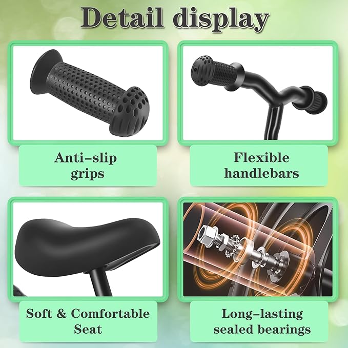 - 【Adjustable Handlebar and Seat】The balance training bike features an adjustable handlebars and comfy seat.It can be adjusted easily while the child grows up.the seat can be adjustable from 30-41cm(11.8"-16.14")