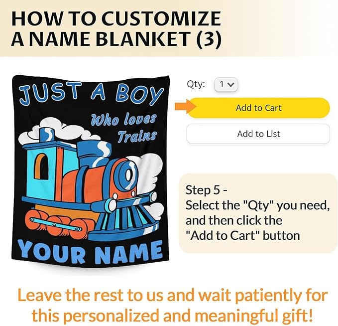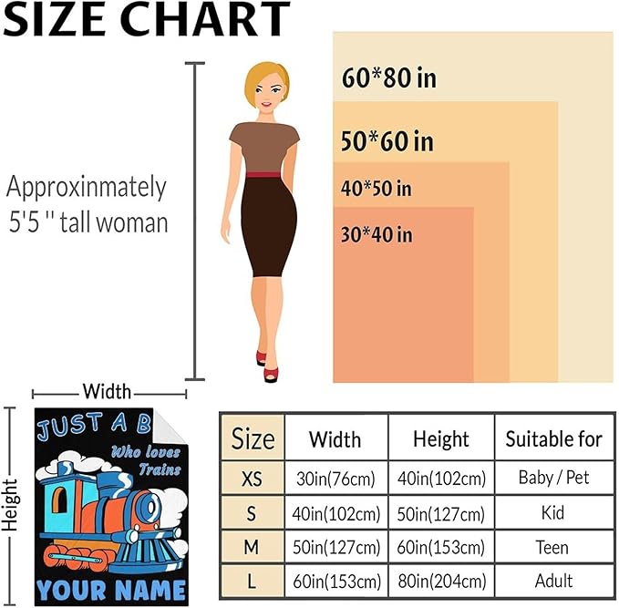- IDEAL CUSTOMIZED BLANKET - Our customizable train blanket is an excellent item for kids, teens and adults. Select your favorite design and add your name or text you desire to make it truly yours. A distinct piece that embodies your style and personality, created with love just for you