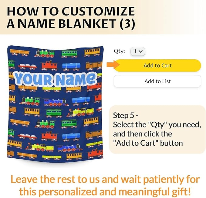 - IDEAL CUSTOMIZED BLANKET - Our customizable train blanket is an excellent item for kids, teens and adults. Select your favorite design and add your name or text you desire to make it truly yours. A distinct piece that embodies your style and personality, created with love just for you