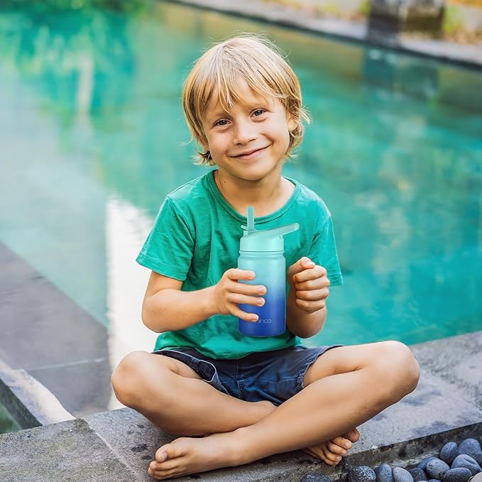 - COLORFUL & PRACTICAL:It’s important for kids to drink water to maintain adequate hydration and reduce consumption of sugar-sweetened beverages. Mininoo toddler water bottle with straw uses only food grade, BPA Free, recyclable materials for our insulated water bottles,This insulated water bottle for kids has a double wall design to keep drinks cold plus vacuum insulation and powder coating to keep it sweat-free and easy to grip
