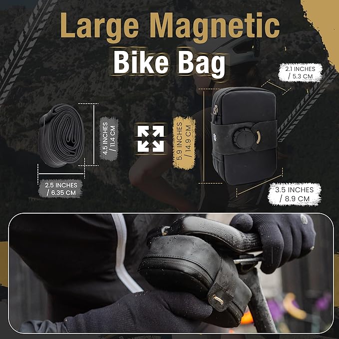 - âś… WHAT FITS INSIDE | Large (0.69L): 2 tubes (Depending on type/size), 2 CO2 cartridges, flat multitool, tire levers, patch kit, some cash/credit cards.