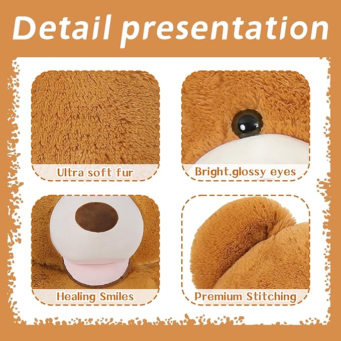 - 【Supreme Softness & Cozy Comfort】 Made with premium materials, the MaoGoLan Life Size Teddy offers unmatched softness. Its plush polyester fur is incredibly soothing, perfect for cuddles, comfort, and relaxation. Whether you're using this teddy bear plush as a pillow or just hugging it tight, this bear will never disappoint in providing comfort and relaxation.