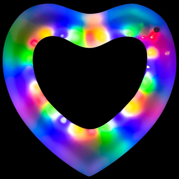 - 【Features】: Bring a light show to your next pool party! Powered by 3V button battery, the illuminated LED swimming ring is a colorful way to light up your night! Lay on it or play on it - the 66" LED swimming ring is fun for everyone! Completely waterproof, the lights can be set to glow a solid color blue, purple, red or green, or set up as party mode - continuously changing lights through. Made of high quality PVC material, durable and strong