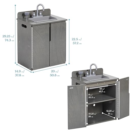 - Product Dimensions: The assembled sink measures 20" W x 14.9" D x 29.25" H; the counter is 22.5” H; the kitchen sink is easy to assemble; Adult Active Engaged & Direct Supervision Required
