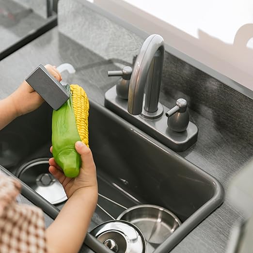 - Kitchen Playset: Cleaning dishes has never been more fun with the wooden sink designed to inspire imaginations during pretend play in a classroom or playroom; practice skills like scrubbing and drying