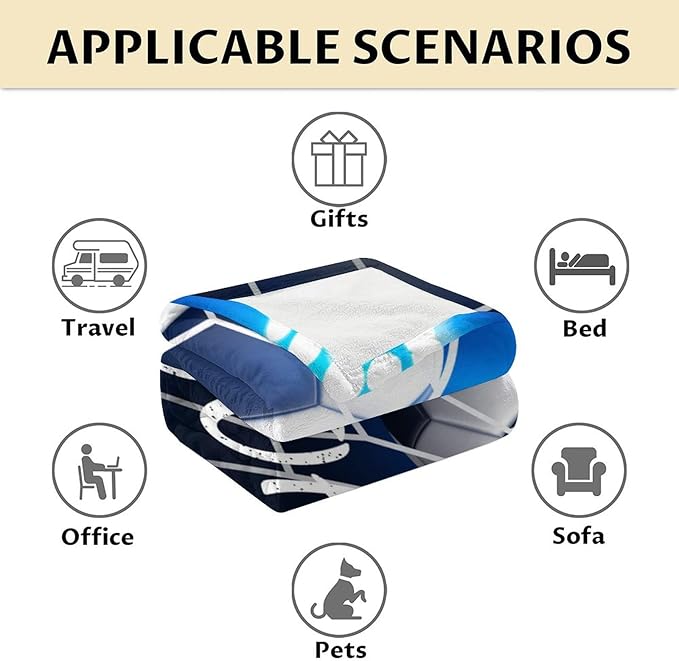 Soccer Blanket for Boys - 60x80 Inches Blanket for Adults Men - Soft Fuzzy Cozy Throws Gifts for Soccer Team - Blue Sports Throw for Couch, Living Room & Bed