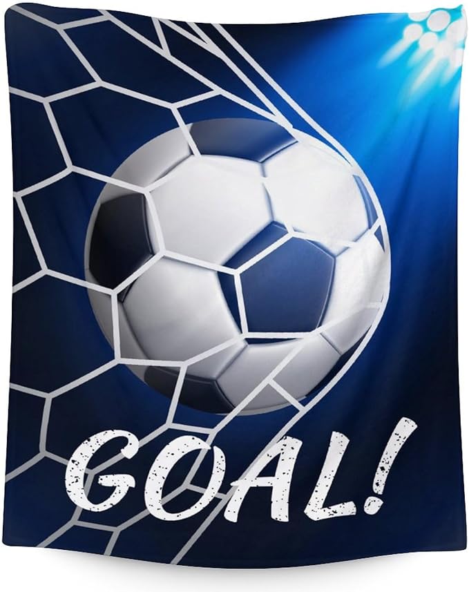 Soccer Blanket for Boys and Girls - 30x40 Inches Lap Size - Soft Fuzzy Cozy Throws Gift for Soccer Team - Blue Sports Throw Blanket for Couch, Living Room & Office