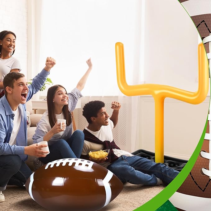 Leyndo 2 Pieces Inflatable Jumbo Football Set Include 36.6" Blow Up Football and 54.3" Inflatable Goal Post for Game Sport Party Decoration, Outdoor Sport Toy for Practice and Fun
