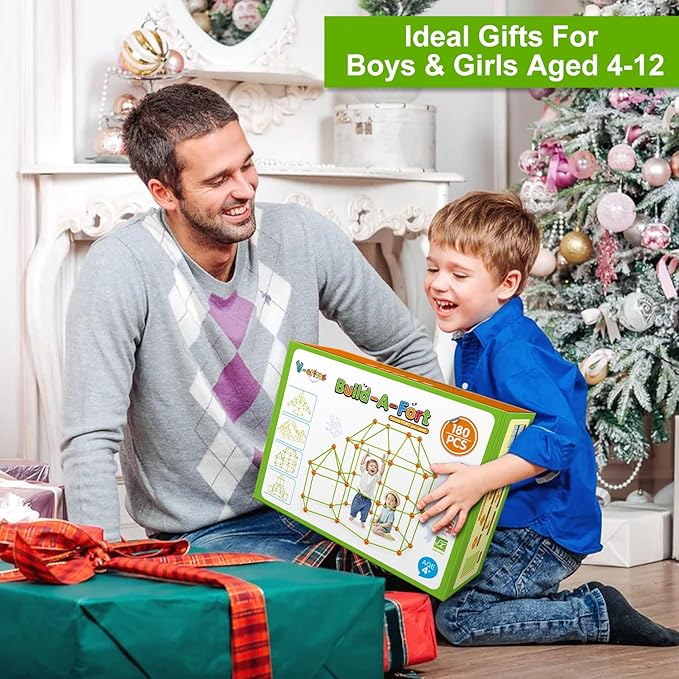 V-Opitos 180 Pack Fort Building Kits for Kids Age 4, 5, 6, 7, 8+ Years Old, Creative Building Toys for DIY Castles, Tunnels, Play Tent, Ideal Christmas, Birthday Gifts for Boys & Girls
