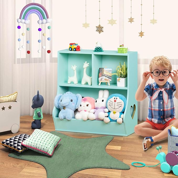 Lerliuo Baby Toddler Bookshelf and Storage Organizer, Kids Cabinet and Bookcase, Wooden 3 Cubby Children Book Shelf for Playroom, Bedroom, Nursery, School 23.62'' H (Green)