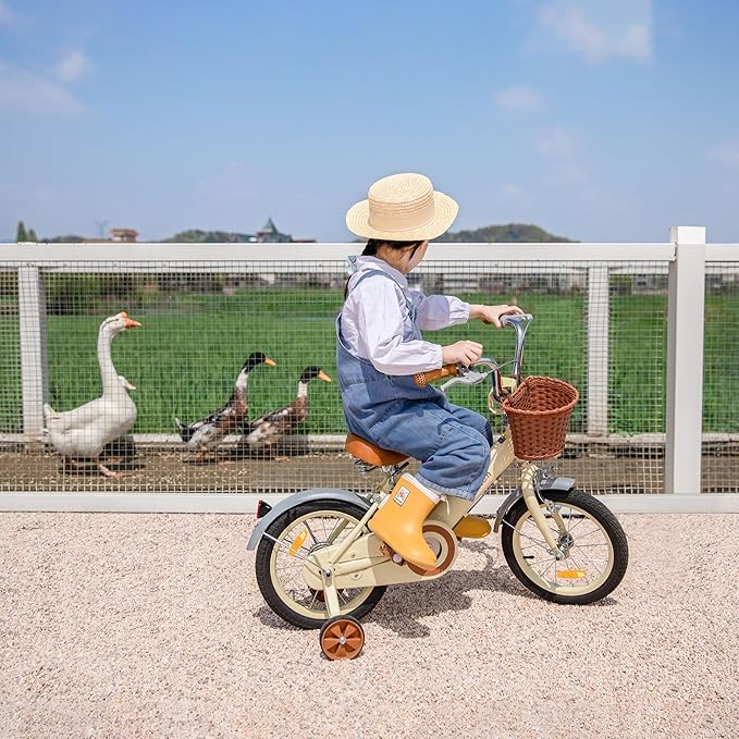 JOYSTAR Vintage Kids Bike with Training Wheels & Basket, 12 14 16 Inch Girls Bike for 2-7 Years Old, Children Bicycles, Multiple Colors
