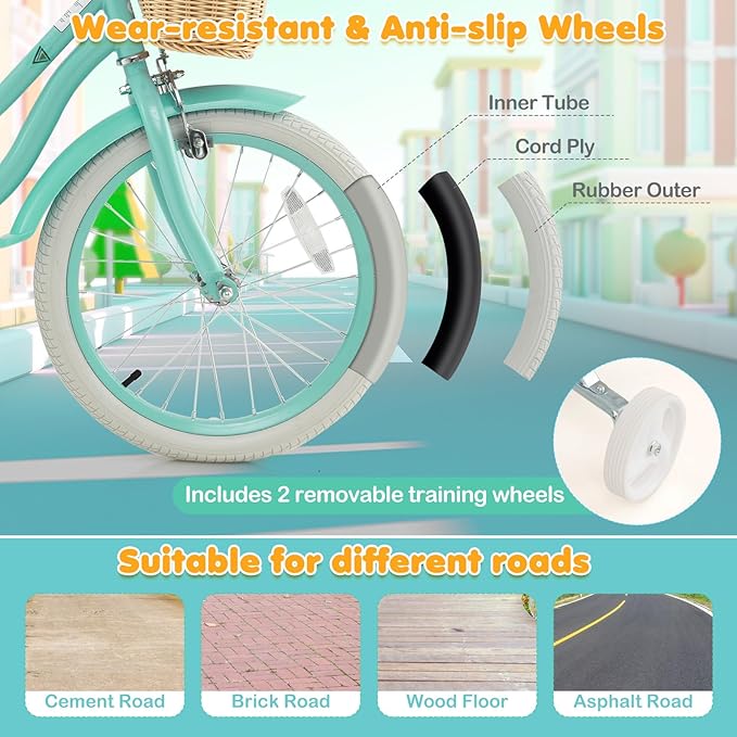 - [ Stable & Safe Design ]: Apart from handbrake which is lighter and easier to maintain, this kids bicycle is also designed with a coaster brake allowing children to stop easily. Moreover, the high-strength carbon steel frame and dual training wheels ensure overall steadiness. While the fully enclosed chain guard avoids hurting little ones.
