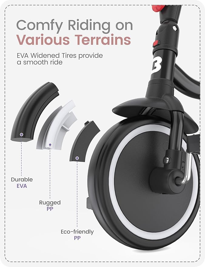 - Safety: The besrey tricycle for toddlers has passed rigorous safety tests, ensuring that all materials and designs are child-safe. We also provide a 24-month hassle-free return policy and a LIFETIME warranty for your satisfied shopping experience