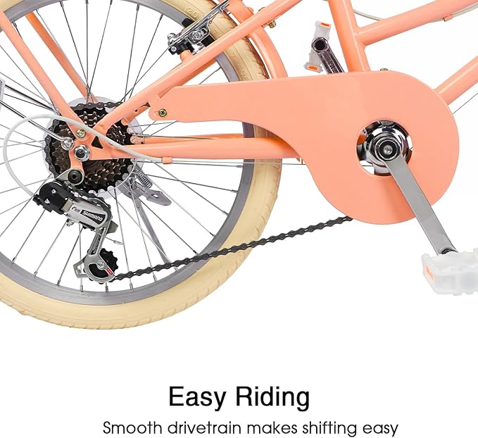 - 【Designed for Princess】The retro-style basket paired with brown synthetic leather saddle give this girls bike a unique and eye-catching appearance, making it an ideal gift for children.