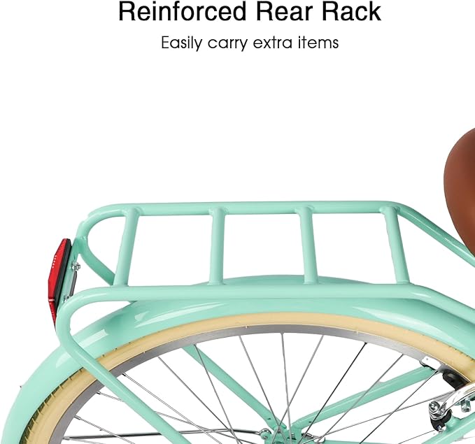 - 【High Performance】The beach cruiser bike features a Shimano 6-speed gear system and a high-carbon steel frame, helping you conquer steep hills with ease. Suitable for a variety of scenarios, from leisurely rides to long-distance commuting.