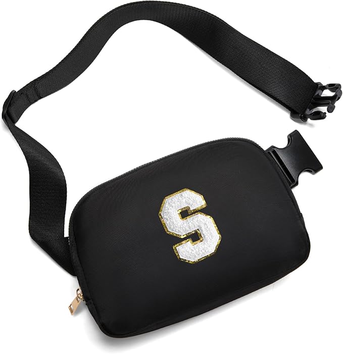 Gitus Birthday Gifts for 8 9 10 11 12 13 Year Old Girls Personalized Fanny Pack Crossbody Bags with Initial Letter Patch Belt Bag for Teen Girls Cute Trendy Stuff Travel Essentials (Black-S)