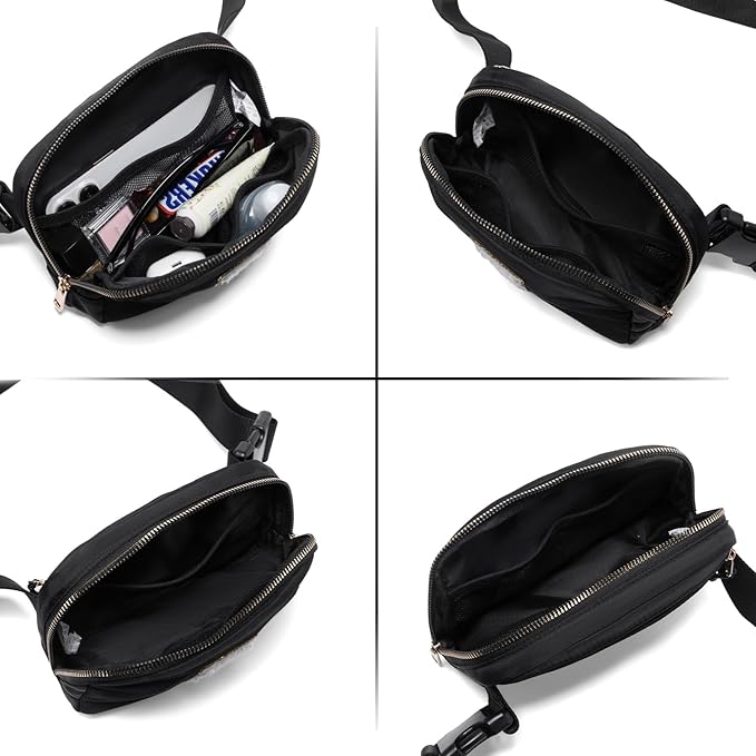 - [Keep your stuff organised:] The everywhere belt bag has two zipped pockets and three mesh pockets to keep your daily essentials organised and everything you need close at hand. It holds your cellphone, wallet, keys, ID, lipstick, hand sanitiser, sunglasses and other essentials. It offers you a lot of convenience.
