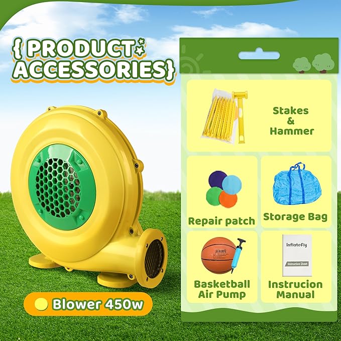 - Versatile and Convenient:Perfect for various occasions, this bounce house is suitable for backyards, gardens, lawns, playgrounds, weddings, and birthday parties. Plus, with easy inflation and deflation, setup and storage are a breeze