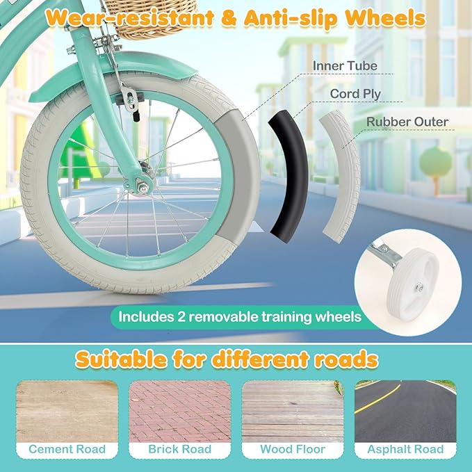 - [ Stable & Safe Design ]: Apart from handbrake which is lighter and easier to maintain, this kids bicycle is also designed with a coaster brake allowing children to stop easily. Moreover, the high-strength carbon steel frame and dual training wheels ensure overall steadiness. While the fully enclosed chain guard avoids hurting little ones.