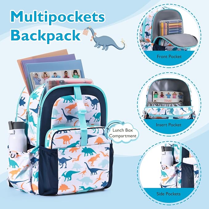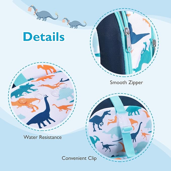 - Compact Lunch Box: Each kids backpack comes with a matching lunch box that easily attaches to the front of the preschool backpack with a buckle. The lunch bag is lined with thermal insulation to keep meals at the right temperature and is designed for easy cleaning, making mealtime on-the-go a breeze.
