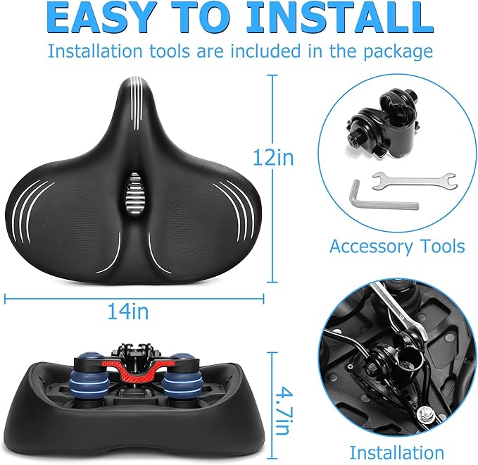 Oversized Bike Seat for Men & Women Comfort, Extra Wide Bicycle Seat Cushion, Comfortable Wing Padded, Large Replacement Saddle for Peloton, Stationary Exercise Bike, Ebike, Cruiser, City Bike