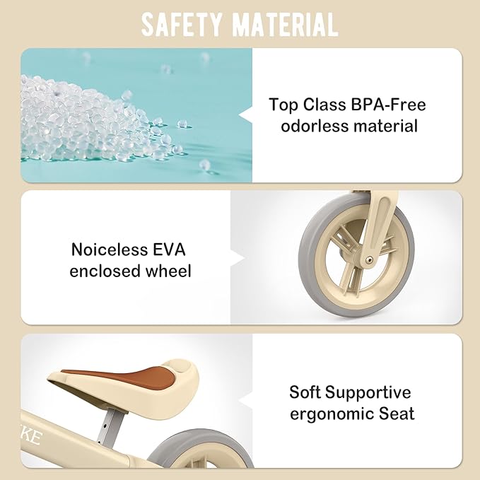 - A few minutes installation: The baby balance bike is easy to assemble and only takes a few minutes to put together.You don’t need to have sophisticated or complicated tools at all.