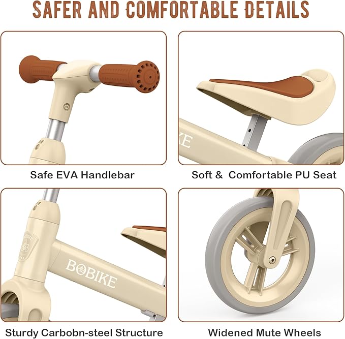- Used indoors and outdoors: Play time has never been this exciting! With BOBIKE blance bike, your kids can play inside or outside the house (with your guidance). It’s a fun activity for little ones and adults alike.