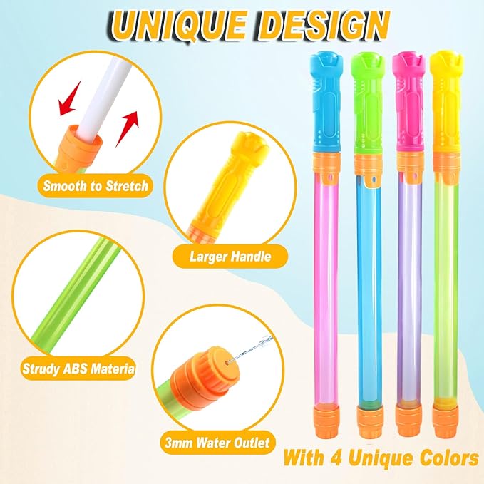 - UPGRADED LENGTH & CAPACITY: Traditional small squirt gun have less capacity and require constant pumping, so we've improved the length of the kids pool water blaster to 15.7 inches, which can stretch to 25.5 inches. Larger capacity, better for you to use with your kids,friends and family for smoother play