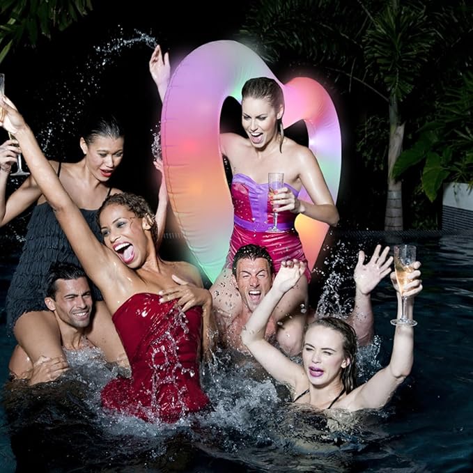- Upgraded Inflatable Heart Pool Float with Lights: The heart pool float has a built-in button and LED light strip, press the switch will always light up, and then the light will flash, lighting up the pool for extra fun!