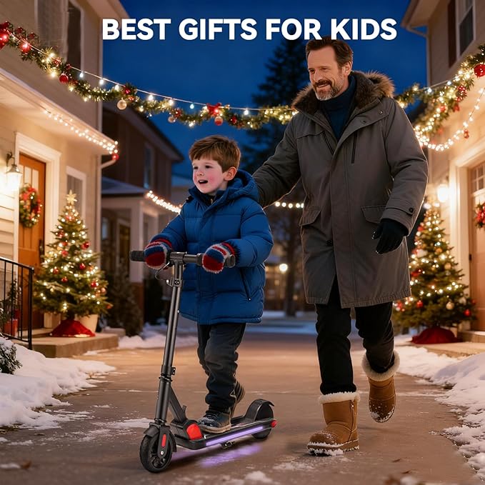 - 【🌈Cool Rainbow Lights】This scooter electric for kids features a glow deck that emits colorful lights during rides, making your child stand out while ensuring nighttime safety. The dynamic light bar adds extra fun, making it a top choice for a kid electric scooter with style.