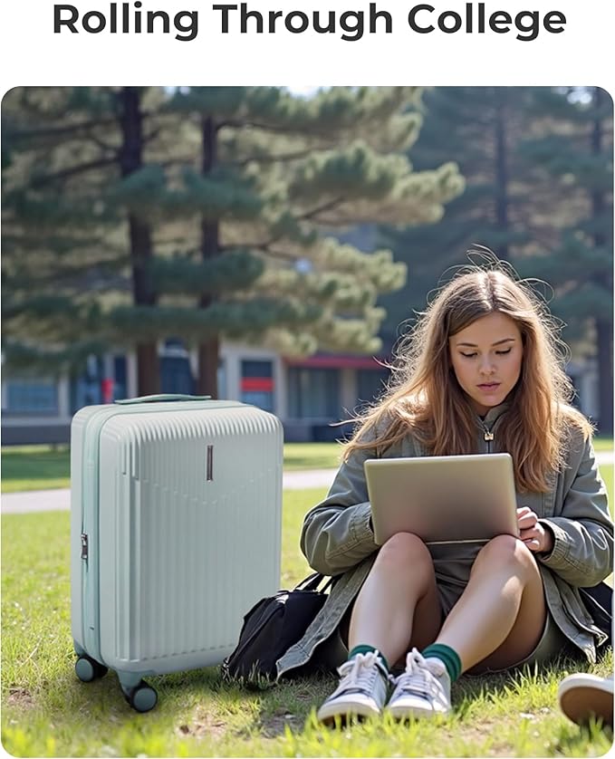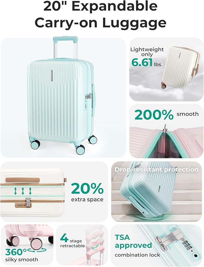 - Outstanding smooth maneuverability: The upgraded carry on luggage with wheels features reduced wheel size to enhance smoothness and reinforce quiet operation. With 8 smooth-rolling silent wheels for stability and ease of use. The 20 inch carry on luggage's four-stage adjustable handle allows effortless height adjustment to glide through airports, streets, and corridors.