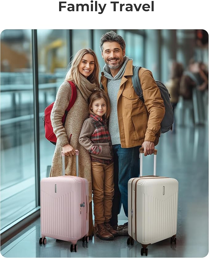 - Durable and resilient materials: The hard case luggage is made of sturdy and durable 100% PC material, ensuring higher durability. Despite being lightweight, it possesses high elasticity and provides protection against accidental drops. Ideal for family trips, short getaways, and long journeys, its custom wheel design makes it easy to spot on luggage carousels.
