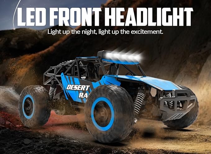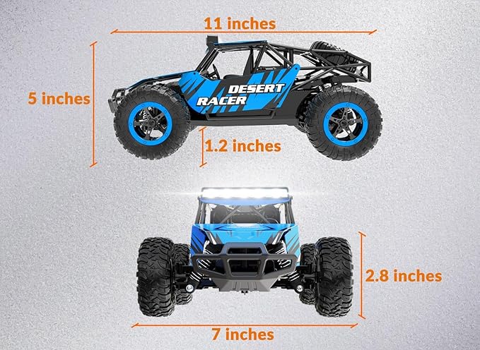 - ANTASTIC CHASSIS LED LIGHT: The high speed racing truck is equipped with multiple LED lights, the lights shine brightly which would make this remote control truck be a super star, the players can also catch its figure easily even at night, don't worry you will not see the truck.