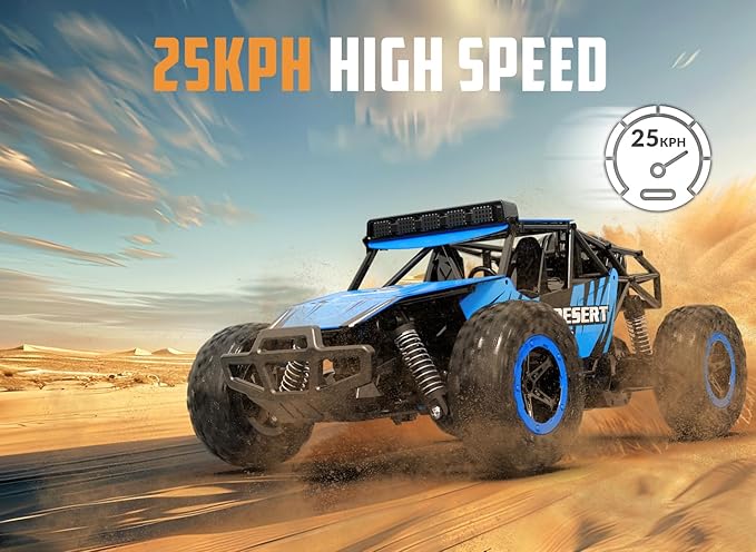 - HIGH SPEED RC CAR FOR ALL TERRAINS: The RACENT remote control truck is made from durable, strong and powerful components, provide you with more realistic racing and off-road game experience. The powerful advantaged motor enable this rc truck to run with a high speed up to 25km/h.