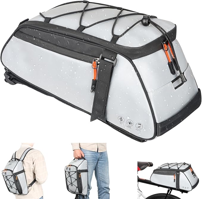 - Multifunctional and Stylish Pannier Bags for Bicycles Rear Rack --- This bike bags for bicycles rear rack not only can be used as a bike seat bag, but also can be used as a backpack to commute with two adjustable shoulder straps. It also allows you to use it as a handbag with the comfortable and wide handle, more versatile for your use.